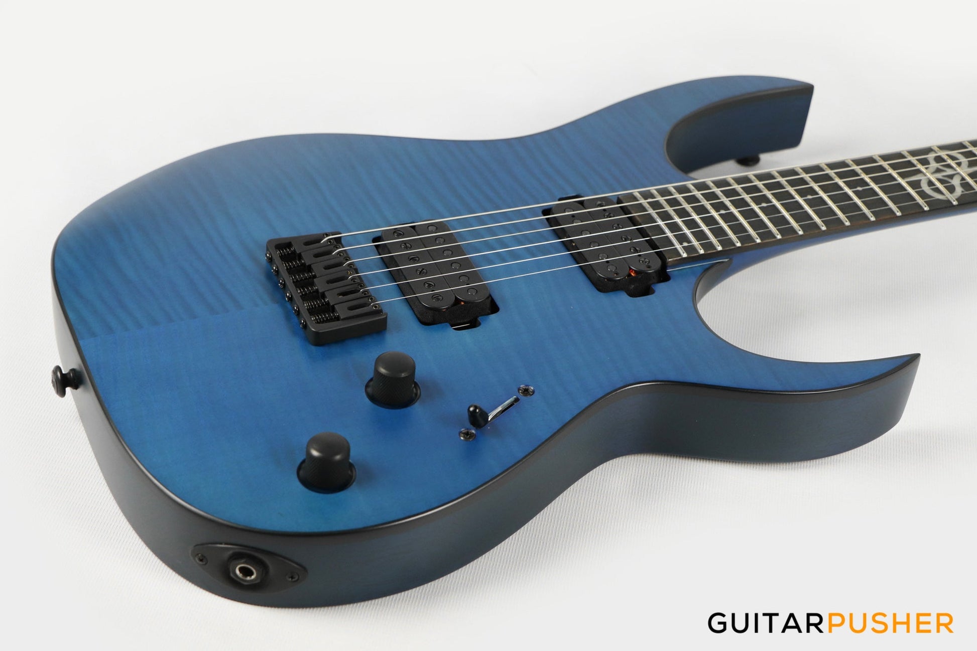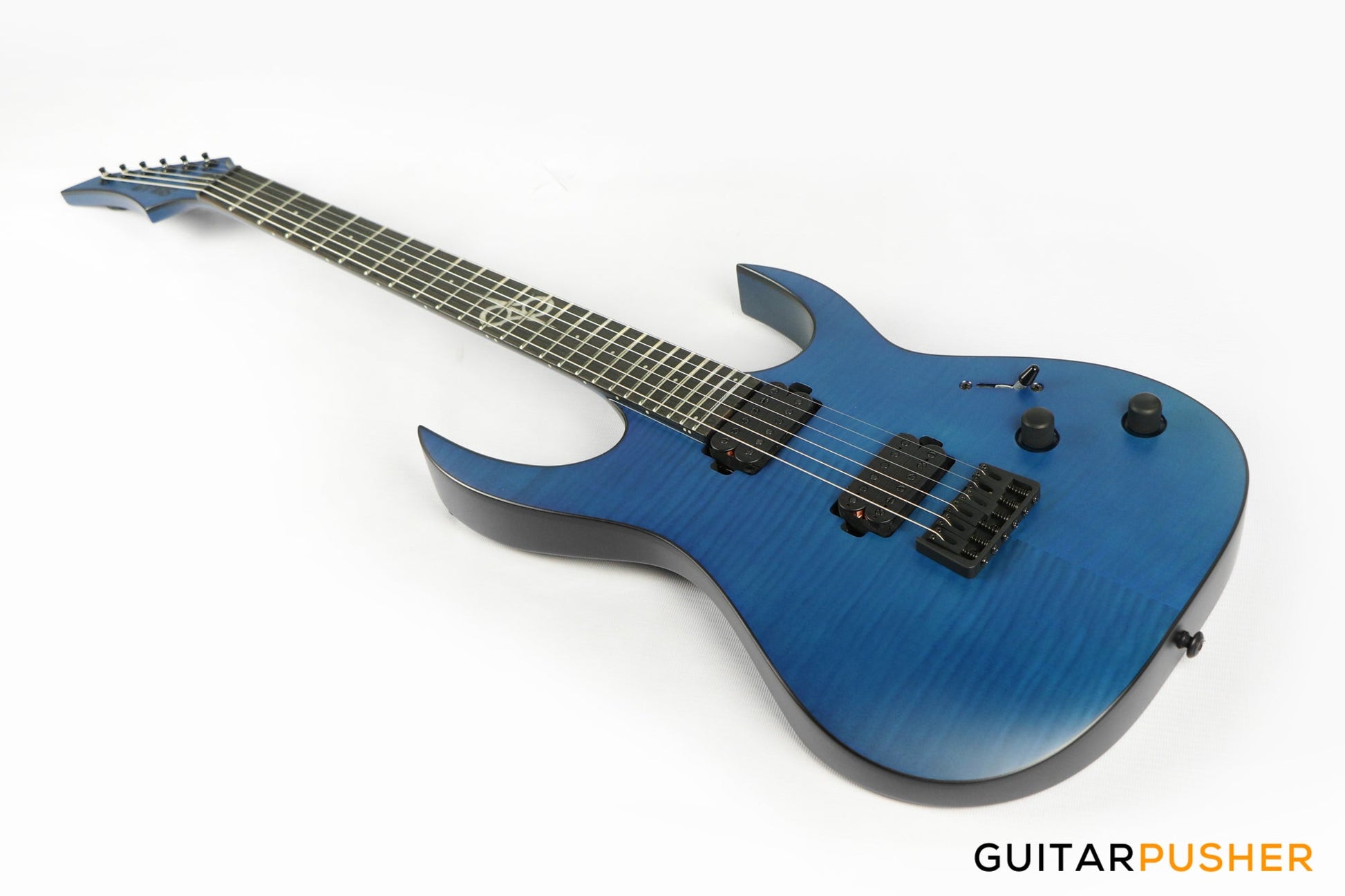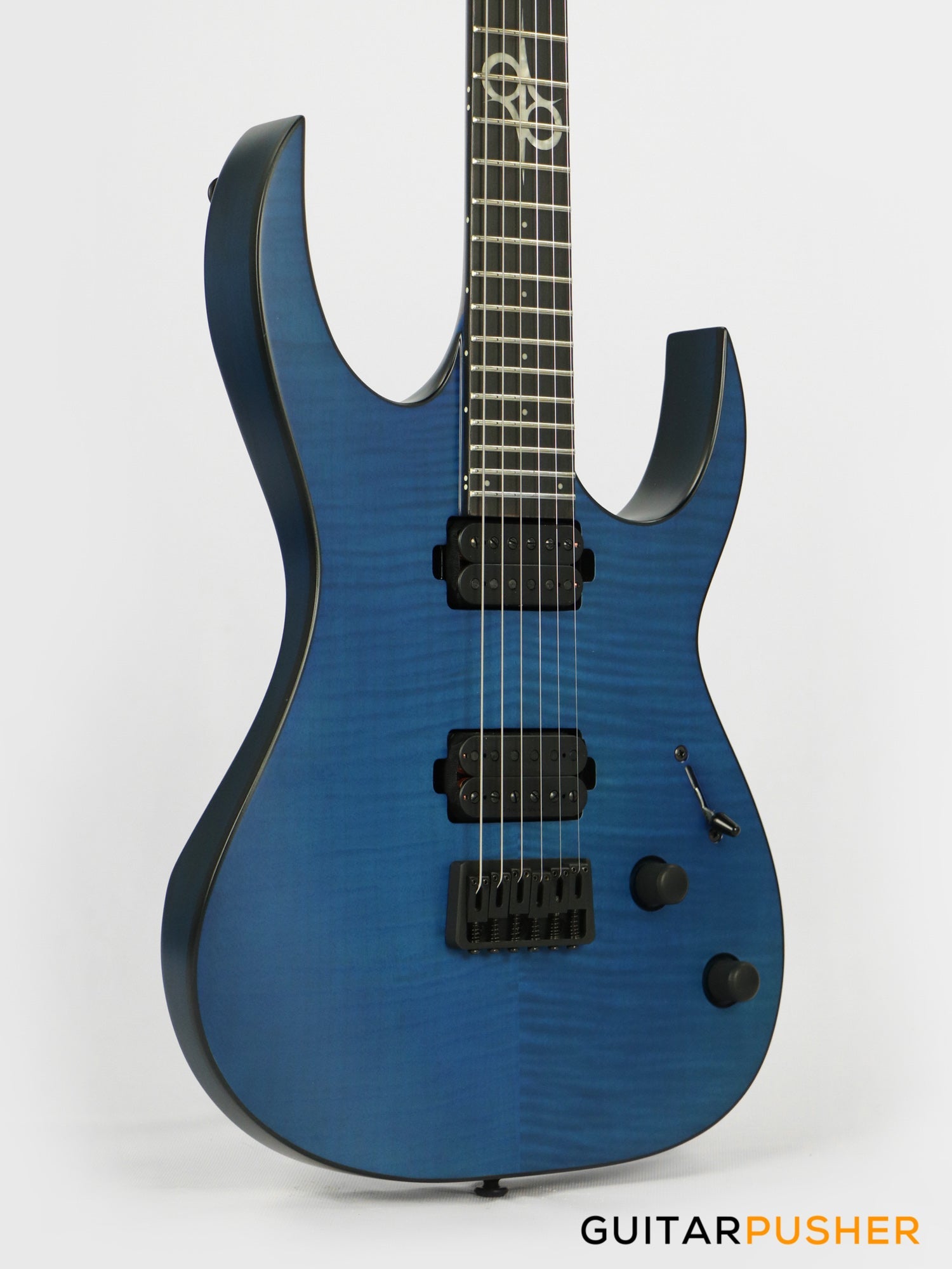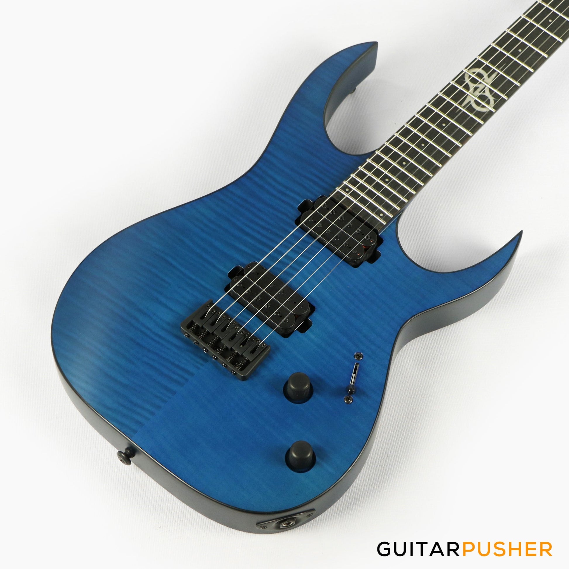 This Type S2.6 guitar combines our dedicated craftsmanship, skill and care for detail with a feature set, making it a precise, professional instrument suitable for both stage and studio work. It is loaded with a reliable string-through-body hardtail bridge and Duncan Solar pickups that provide a full spectrum of tonal options, from organic clean to heavily overdriven, all with fluid sustain and maximum clarity. The Type S2.6 guitar features a set-thru neck/body joint design with 25.5” scale, a mahogany body with flame maple veneer top and black binding, a fast, thin, comfortable maple neck and ebony fingerboard with 24 super-jumbo frets. Also included are Solar 18:1 tuners, graphite nut, black matte hardware, five-way blade pickup switching and full access neck. Available in flame blue matte finish.