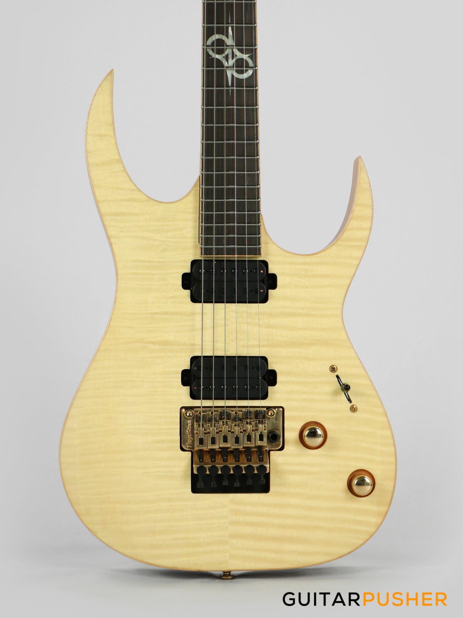 This Type SB1.6FR six-string bolt-on guitar combines our dedicated craftsmanship, skill and care for detail with a remarkable feature set, making it the ultimate, precise and professional instrument suitable for both stage and studio work. The reliable Floyd Rose 1000, made of hardened steel combined with an 34 mm block, offers increased sustain and resonance while all tremolo springs are mechanically muted. Our unique Duncan Solar pickups will provide you with a full spectrum of tonal options, from organic clean to heavily overdriven, all with fluid sustain and maximum clarity. The Type SB1.6FR guitar features bolt-on neck design with 25.5” scale, an mahogany body with flame maple veneer top and 1 ply maple wood binding, a fast, thin, comfortable 5 piece maple/jatoba neck and ebony fingerboard with 24 super-jumbo stainless steel frets and ‘glow in the dark’ side dots for easy stage use. It comes loaded with Solar 18:1 locking tuners, locking nut, gold hardware, five-way blade pickup switching. Available in flame natural matte finish.