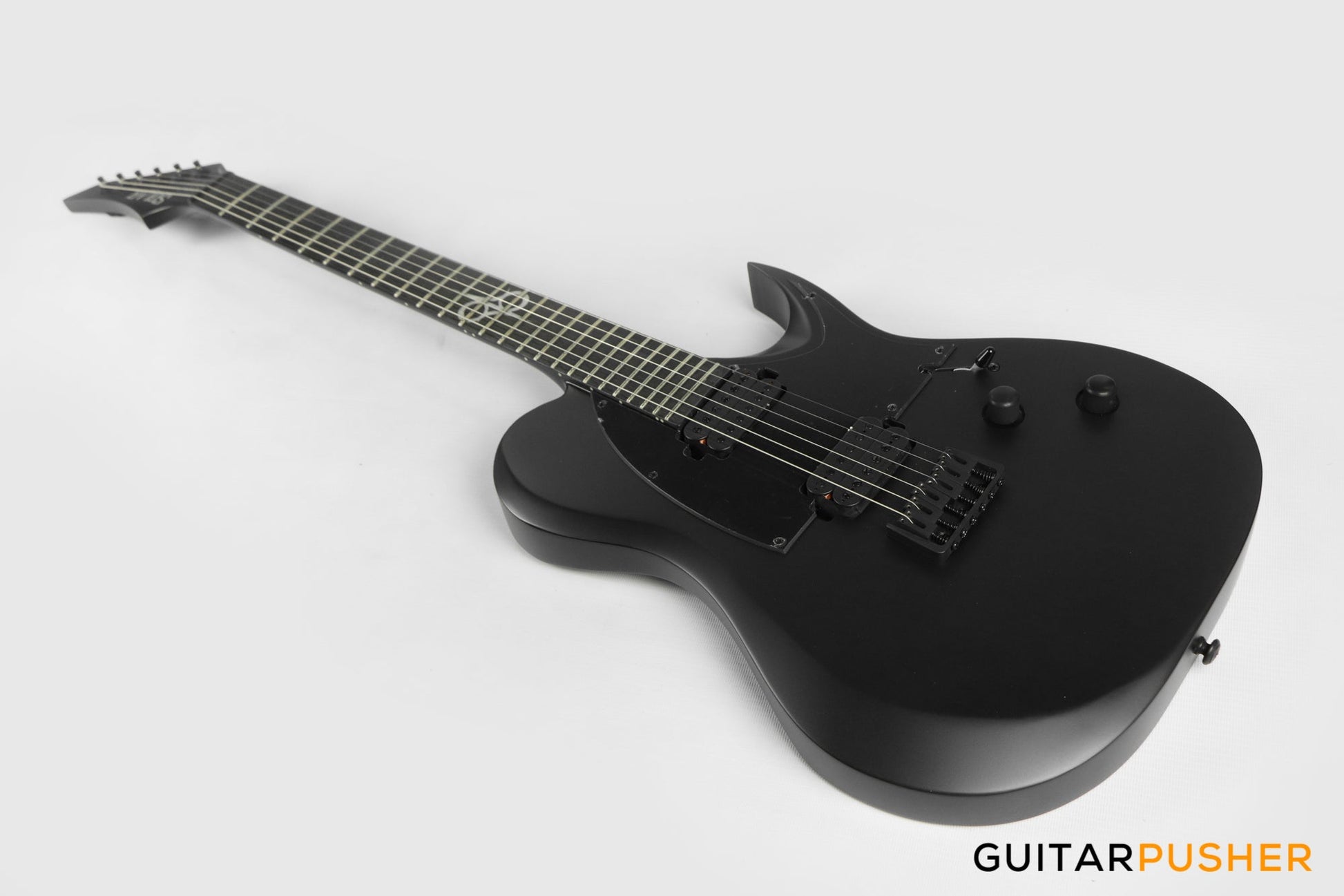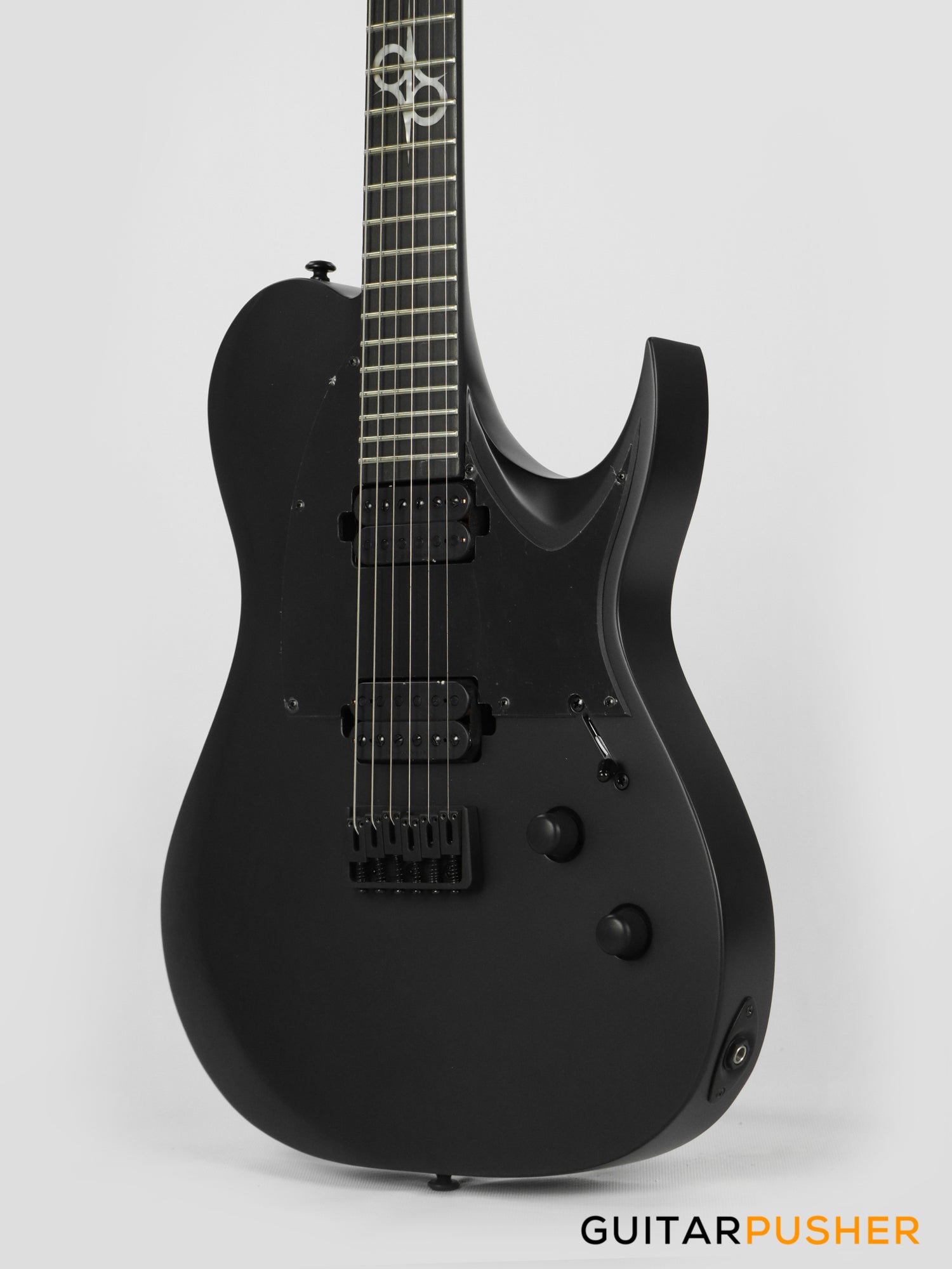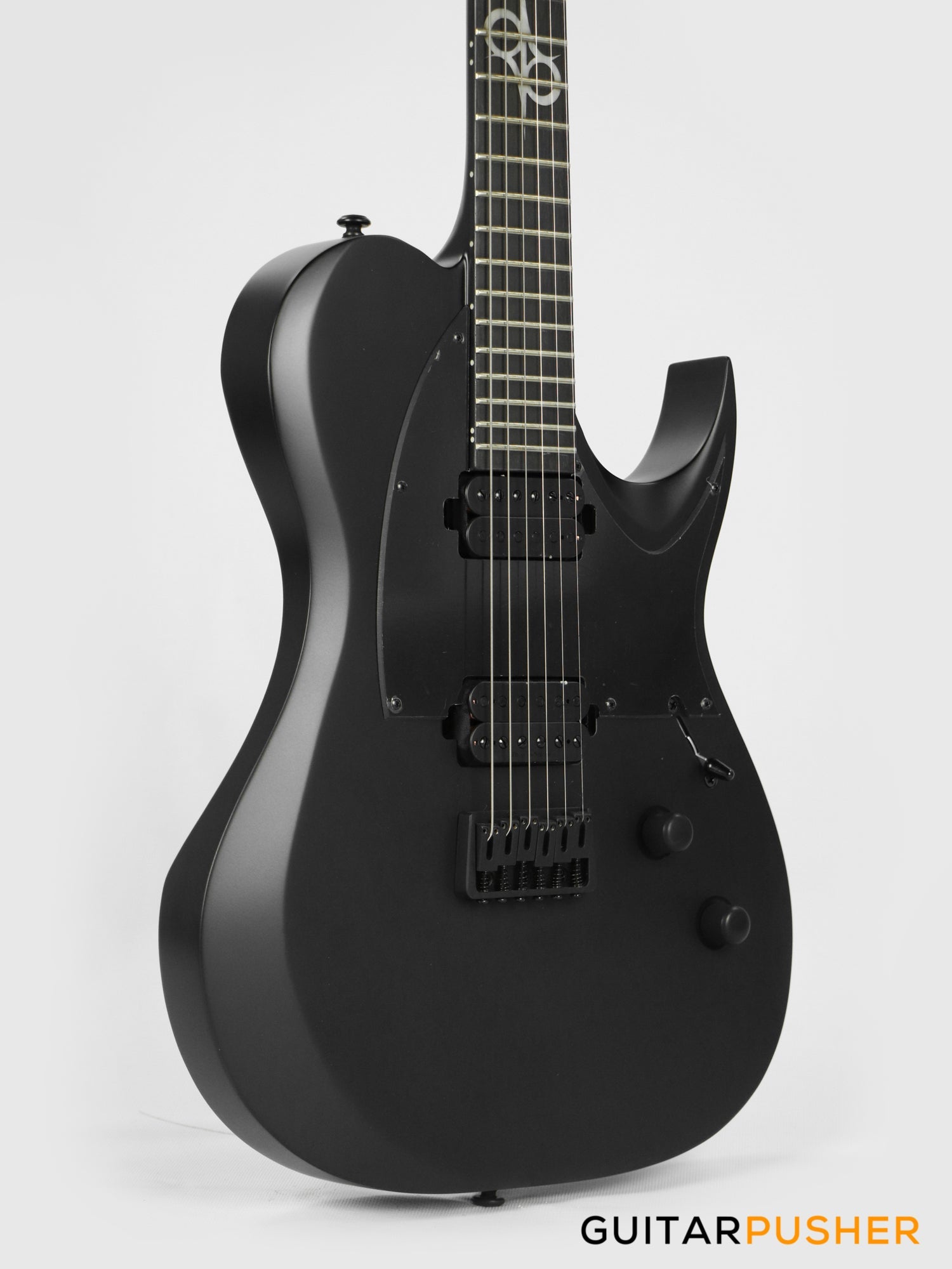 This Type T2.6C six-string guitar with classy and elegant metal looks and distinctive and ergonomic arm rest bevel line stands out with a remarkable feature set, making it the precise and professional instrument suitable for both stage and studio work. It comes loaded with a reliable string-through-body hardtail bridge and a set of Duncan Solar pickups that provide a full spectrum of tonal options, from organic clean to heavily overdriven, all with fluid sustain and maximum clarity. The Type T2.6C features a set-thru neck/body joint design with 25.5” scale, a mahogany body with pick guard, a fast, thin, comfortable maple neck, an ebony fingerboard with 24 super-jumbo frets. It includes Solar 18:1 tuners, graphite nut, black matte hardware, five-way blade pickup switching and full access neck. Available in carbon black matte finish.
