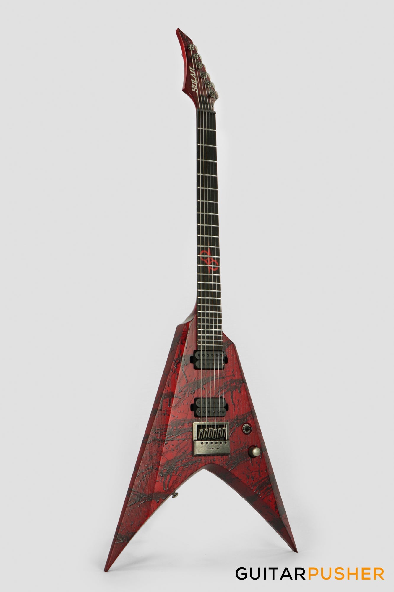 Solar Guitars V1.6 Canibalismo Blood Red Open Pore w/ Blood Splatter Electric Guitar