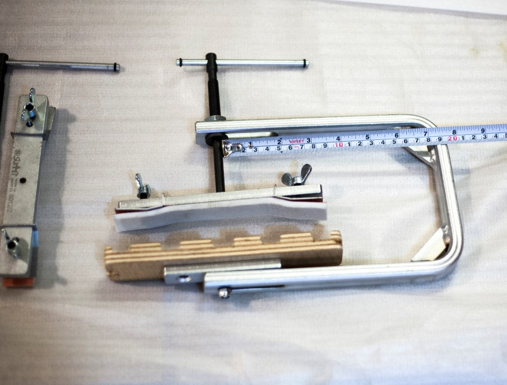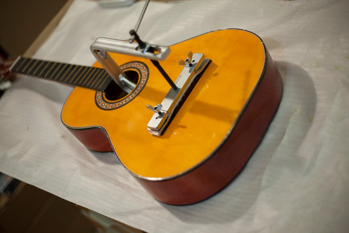 Easy, fast and accurate gluing of wooden bridges on classical and/or acoustic guitars.