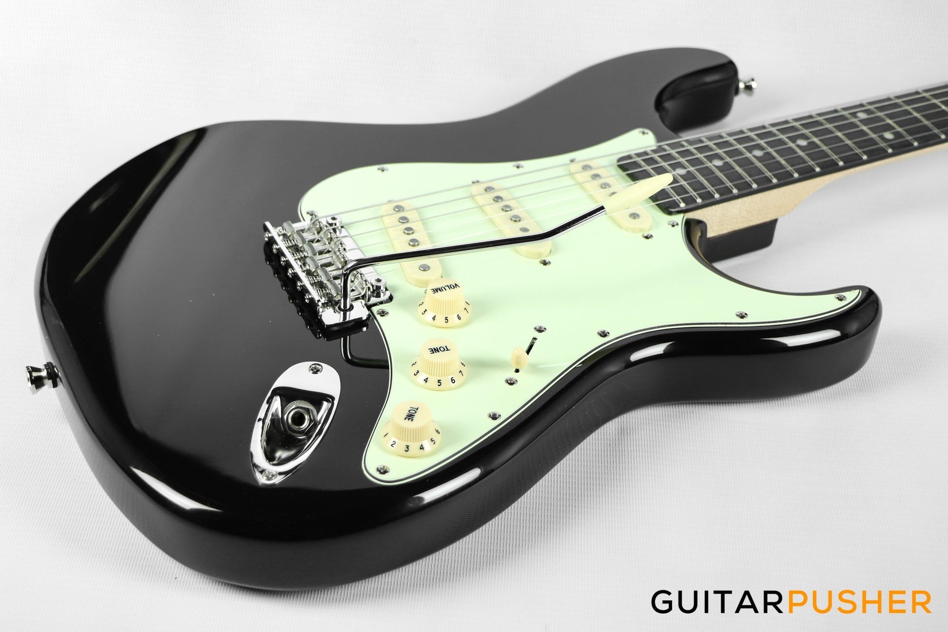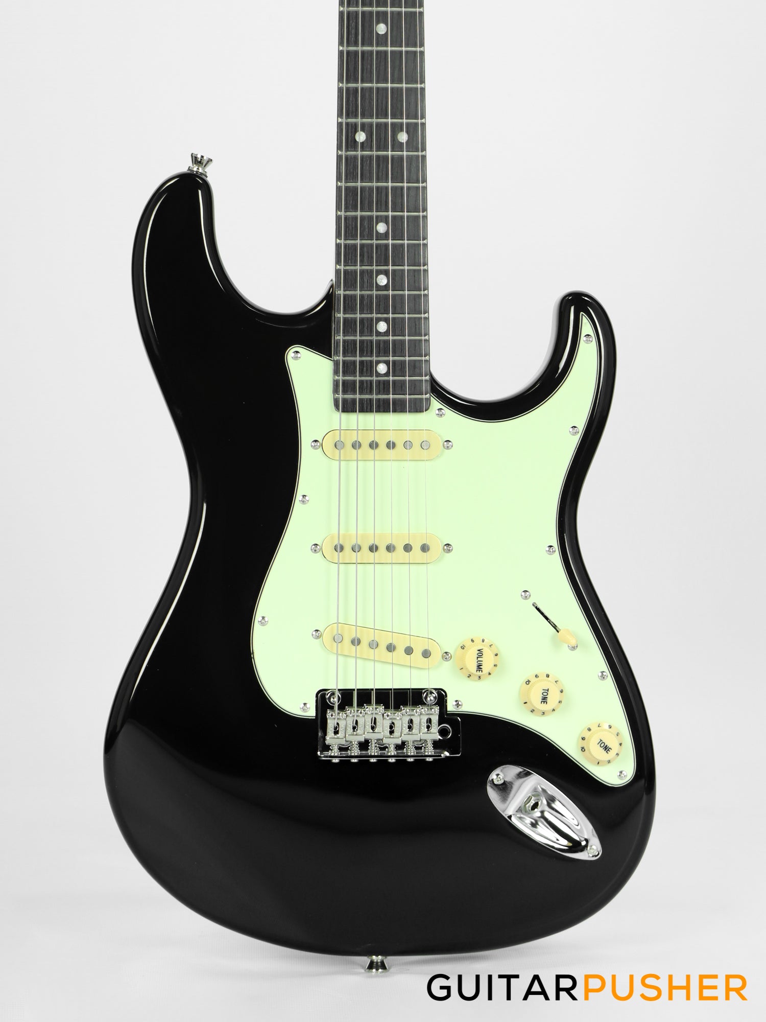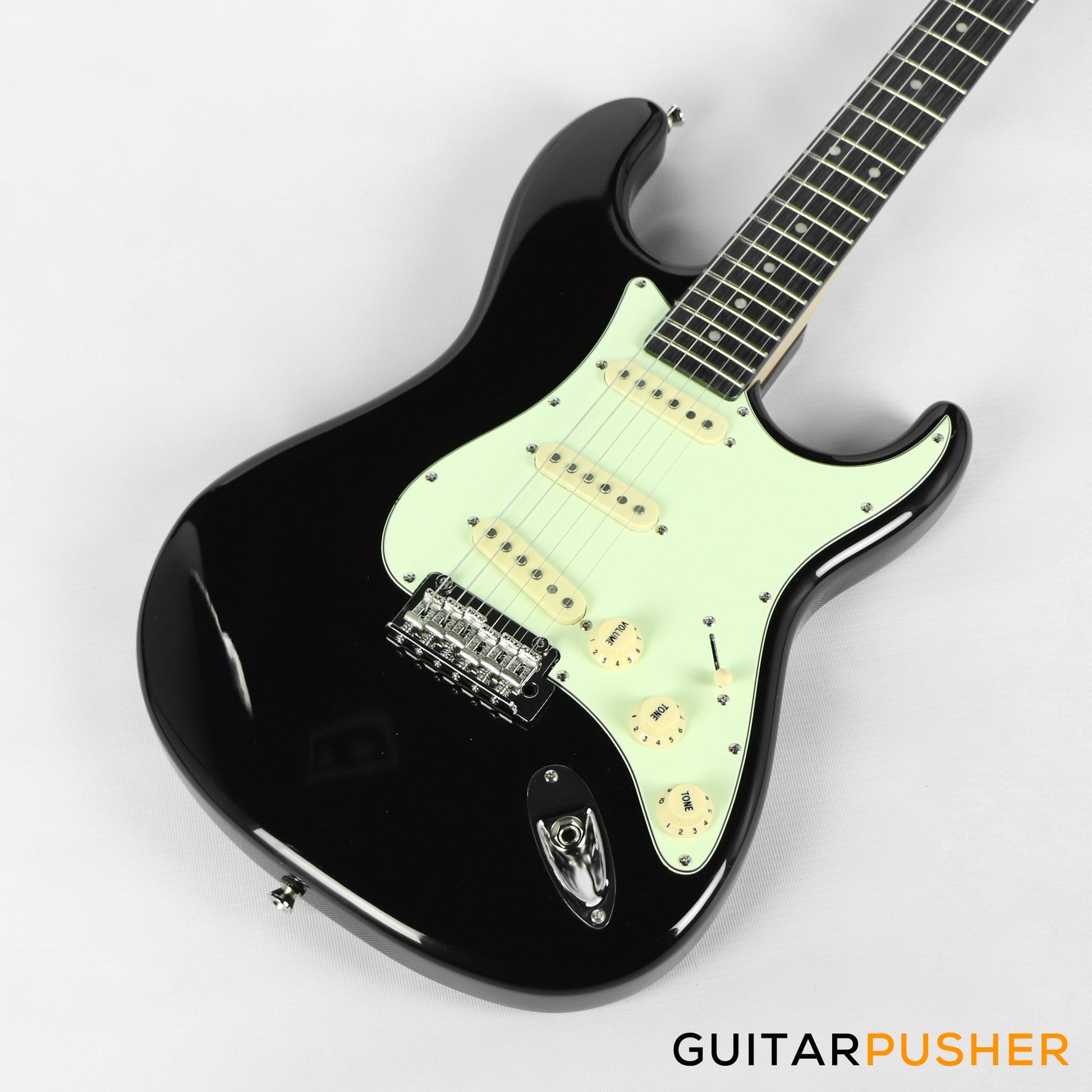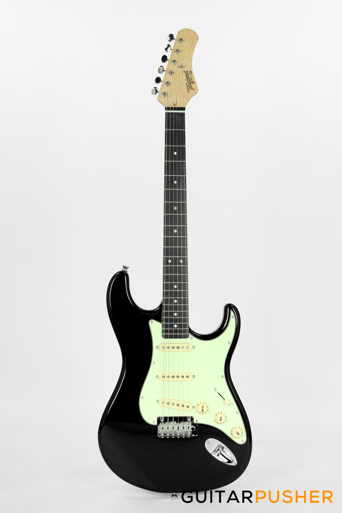Tagima New T-635 Classic Series S Style Electric Guitar - Black (Rosewood Fingerboard/Mint Green Pickguard)