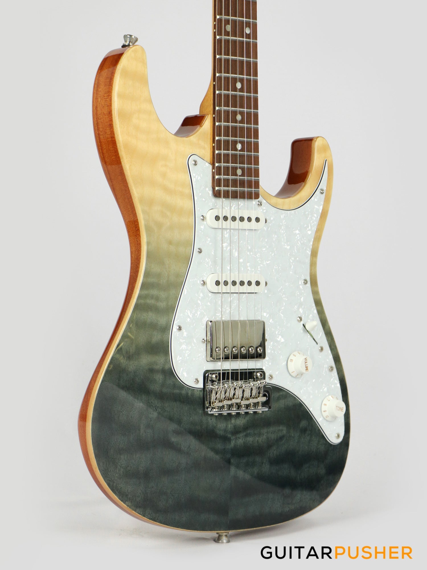 Tagima Stella DW HSS S Style Electric Guitar (Transparent Black Fade) Rosewood Fingerboard/White Pickguard