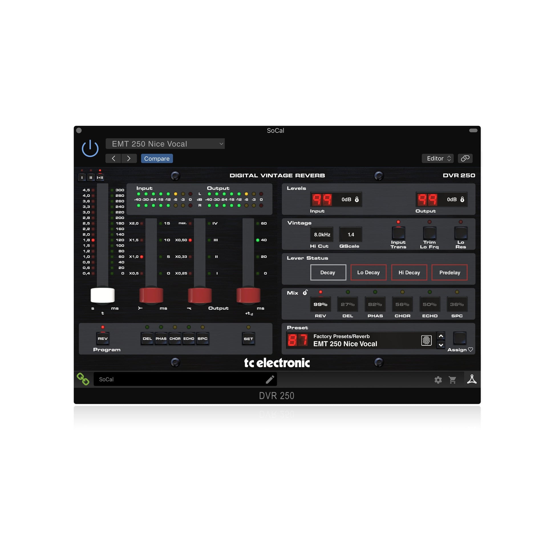 The optional hardware add-on for the DVR250 provides high-resolution input and output meters for accurate signal monitoring directly on the hardware interface. The hands-on controls also let you tune all tone-defining parameters including pre-delay, decay, dampening and much more.