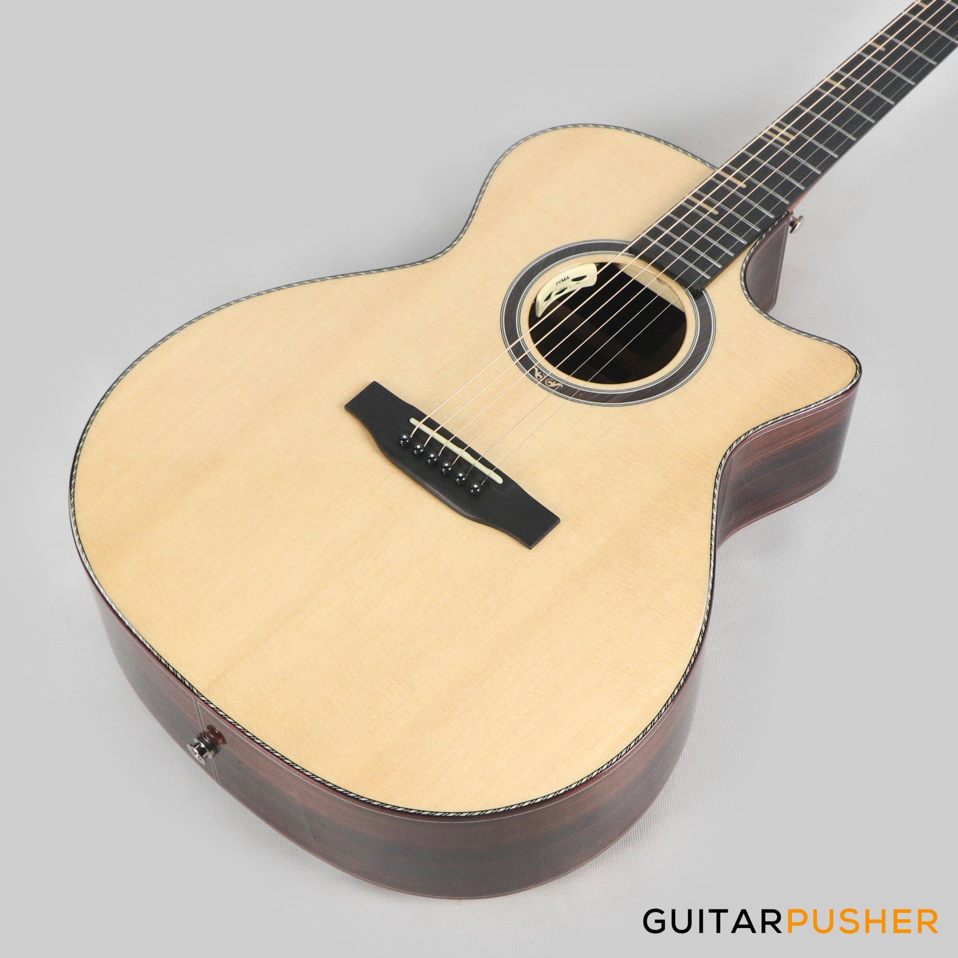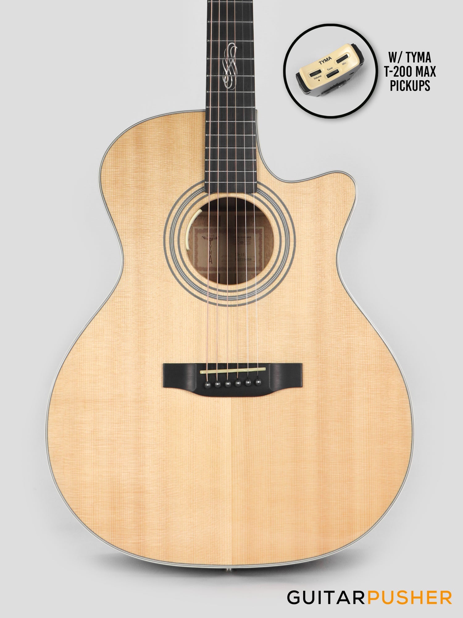 Tyma TG-15E Solid Sitka Spruce Top Grand Auditorium Acoustic-Electric Guitar with T-200 MAX preamp and Hard Case