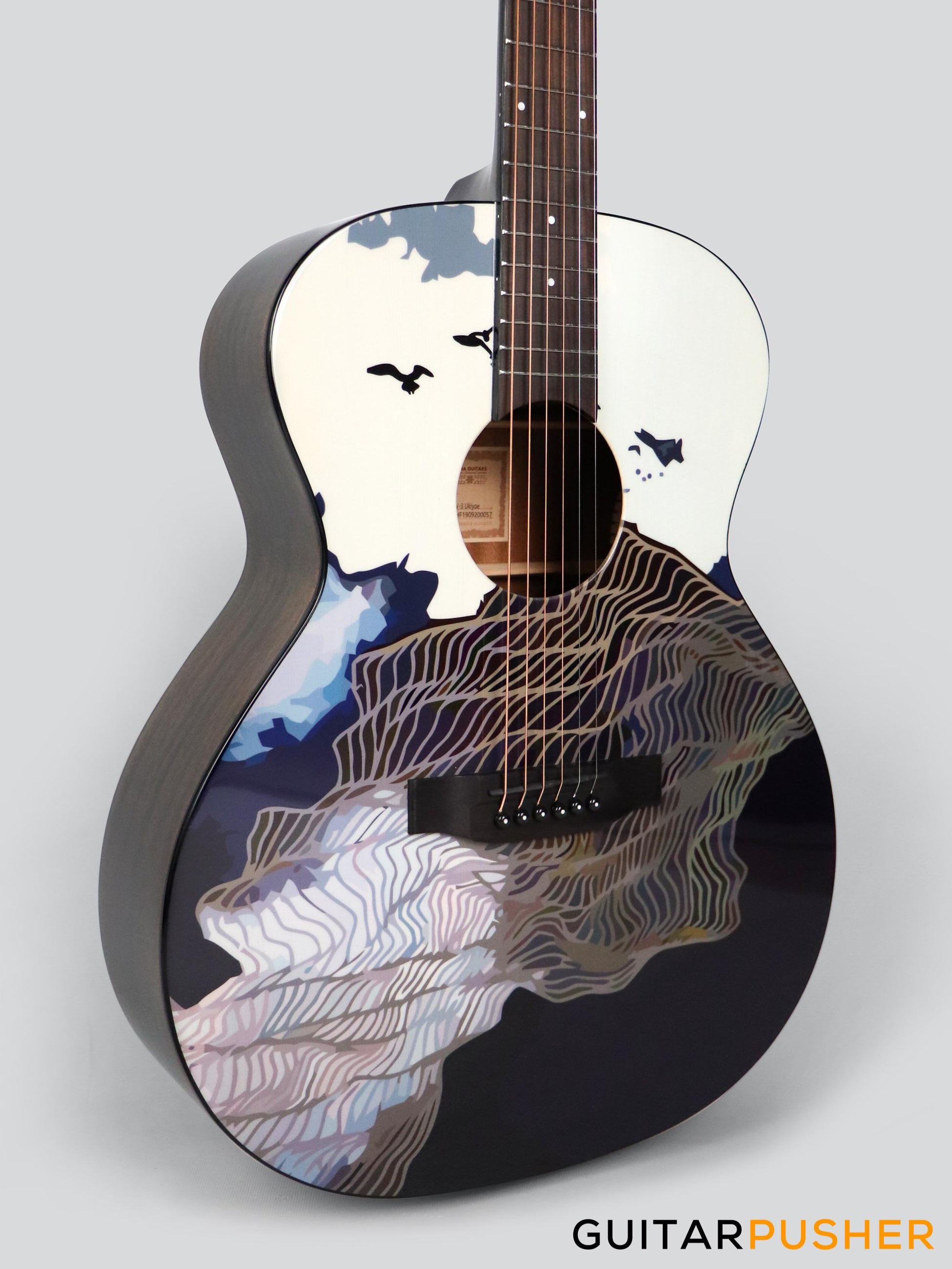 Brand new for the Winter NAMM Show is the new Visual line of Tyma by Lyman guitars! The V-3 Ukiyoe features beautiful graphics on top of their beautiful Sitka Spruce tops. The unique Ukiyoe Japanese art really makes this guitar stand out! These guitars aren't just looks though. With it's timeless combination of a solid Spruce top, Mahogany back and sides, Ebony bridge and fretboard, and an incredible set-up, these guitars sound just as good as they look! On top of all that, the V-3 comes equipped with the Tyma T-50 under-saddle piezo pickup. Sound too good to be true? The V-3 also comes standard with a Tyma deluxe gig bag. You're welcome. Each Tyma goes through seven separate inspections before the guitar is completed.