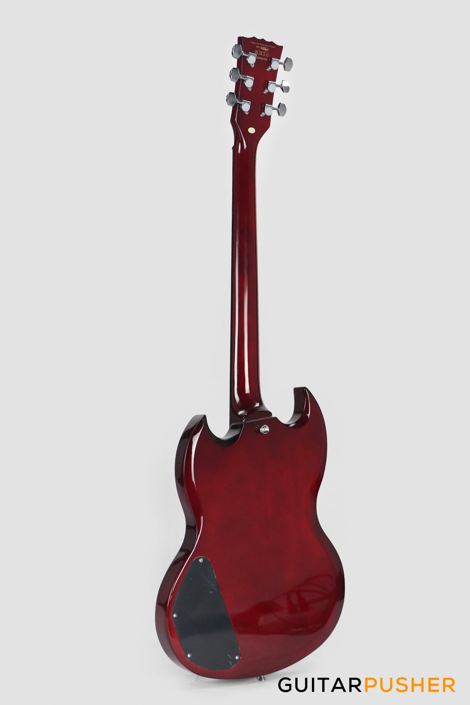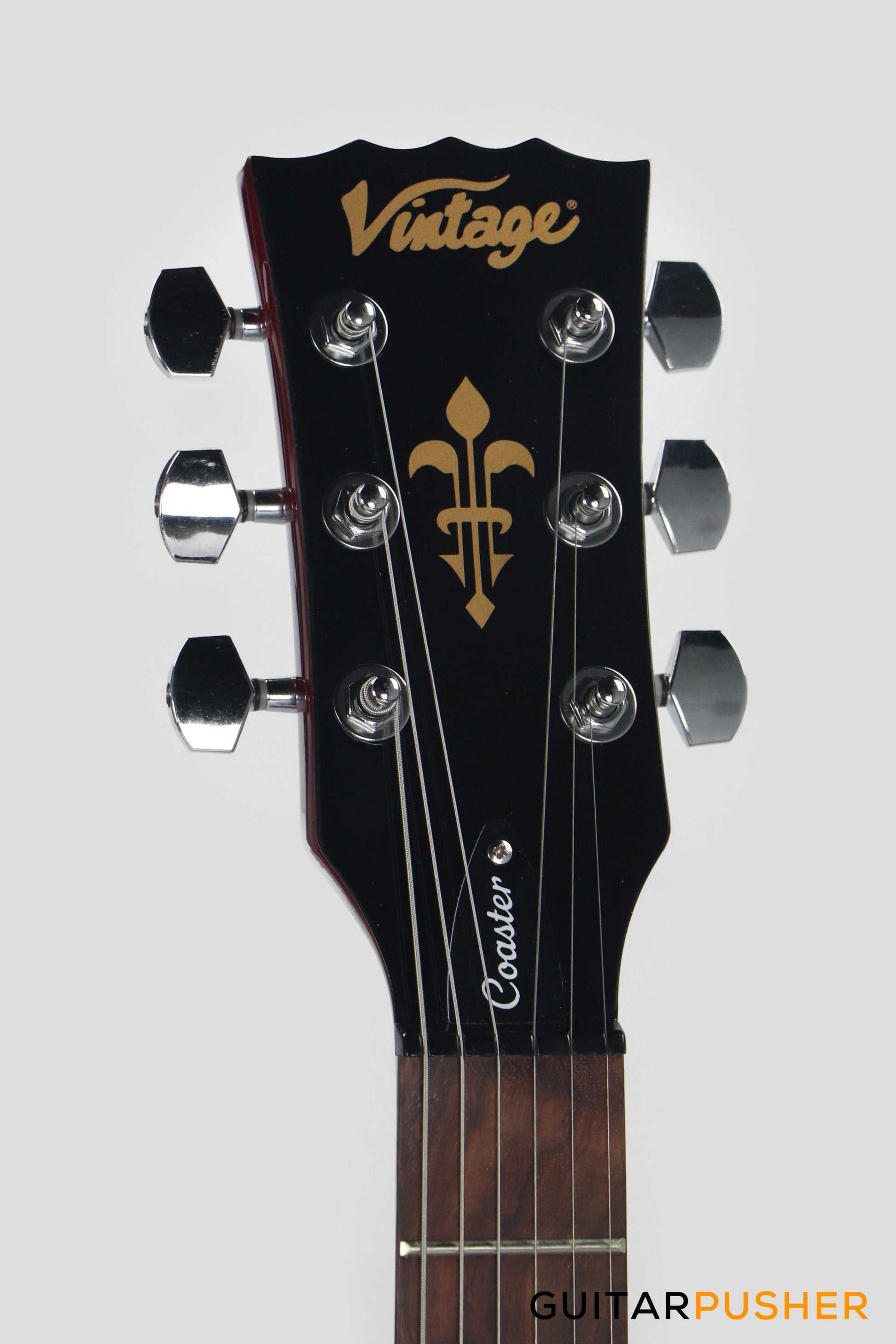 With a beautiful finish, offset with a 3-ply scratch plate, black control knobs and chrome hardware the Vintage Coaster V69 twin cutaway, solid bodied electric guitar is a fine example.