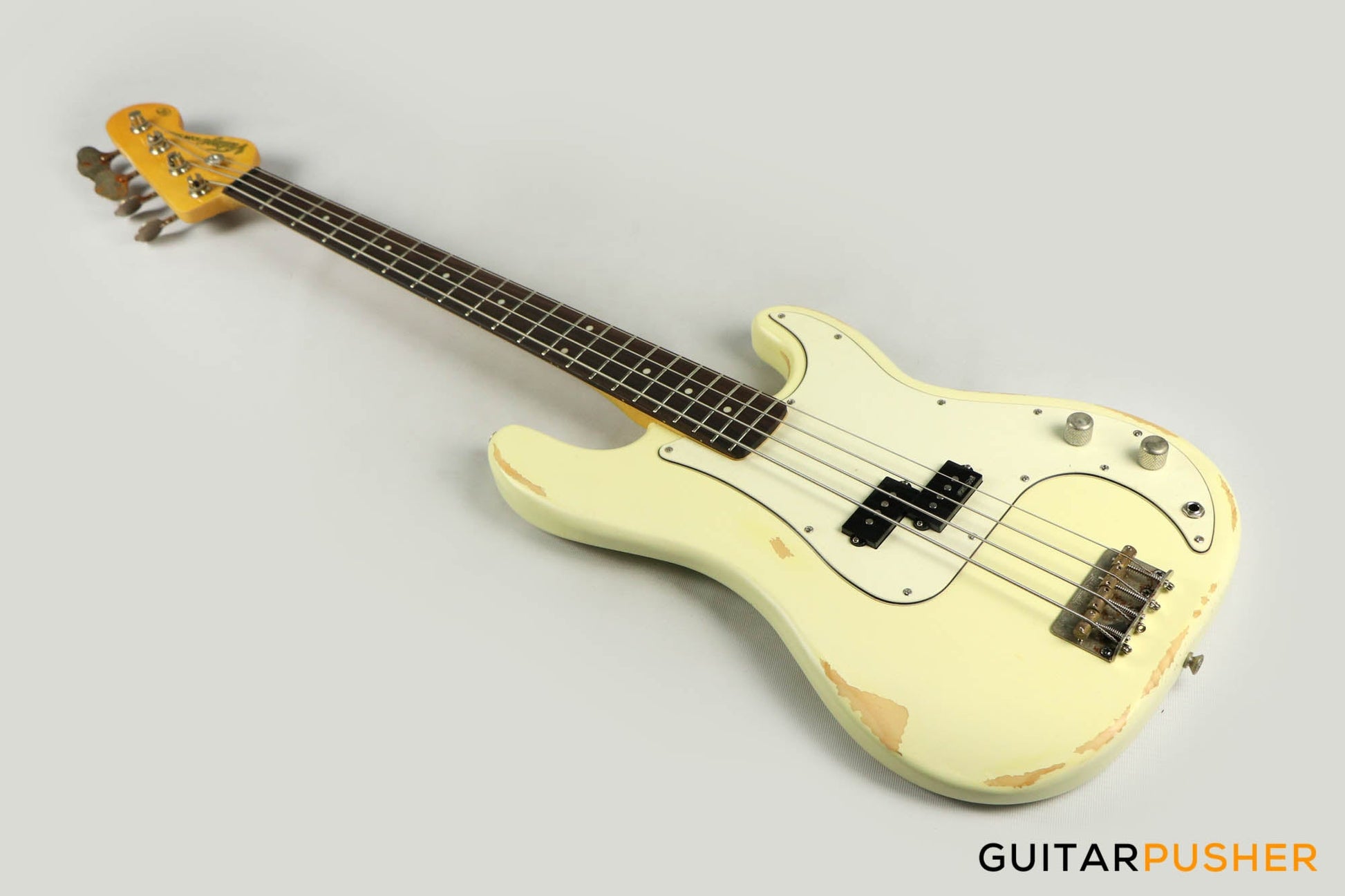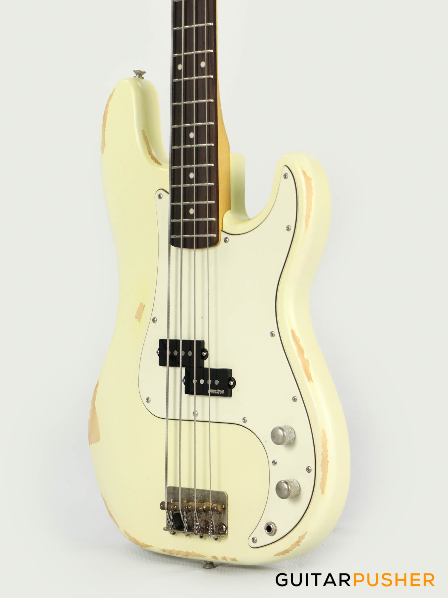This classic Vintage Icon V4 bass is fully equipped with Wilkinson tuners, hardware and pickups and looks like it’s been played for decades with all the marks, wear and tear to prove it. It’s been through the mill but it’s way cool and ready for the next gig.