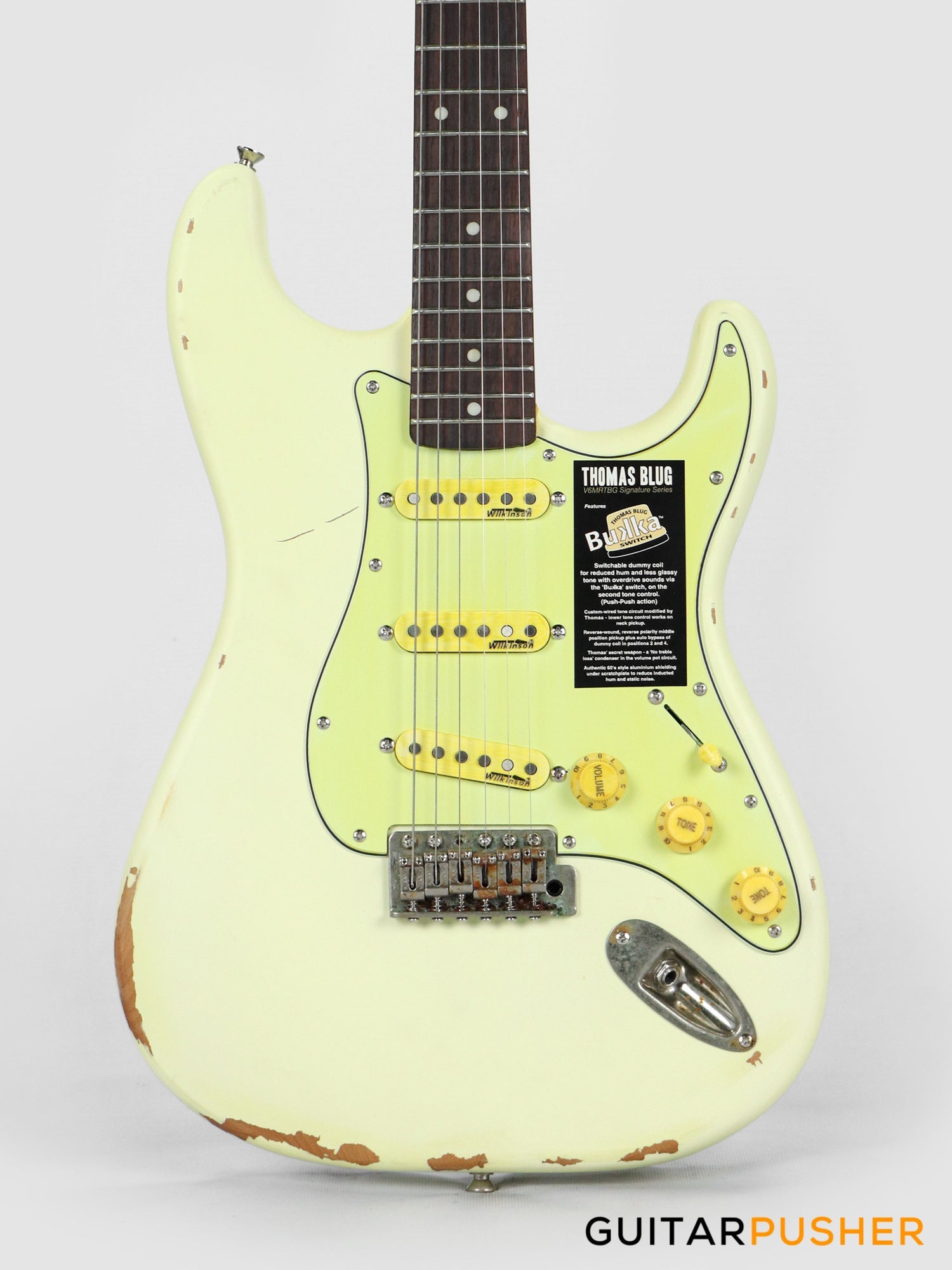 Vintage V6 Thomas Blug Signature S-Style Electric Guitar - Distressed Vintage White