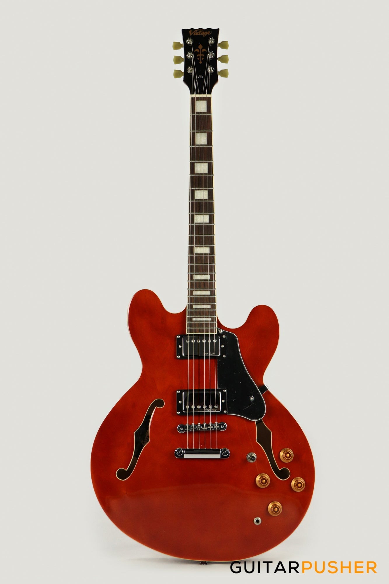 Vintage VSA500 Reissue Semi-Hollow Electric Guitar - Natural Walnut