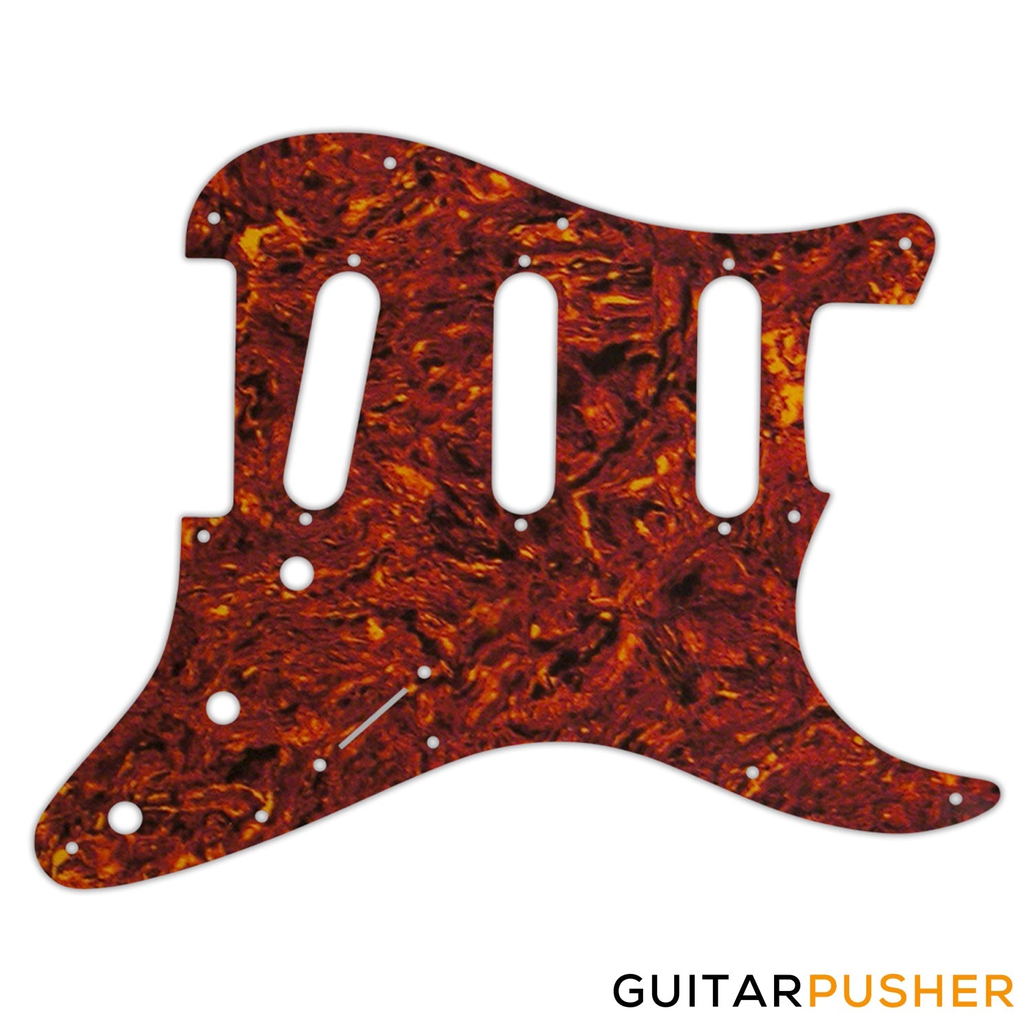 Please note that this pickguard will only fit genuine U.S. production Fender® Stratocaster® or Made in Mexico Fender® Stratocasters® post 2002 production. It will not fit Squier® or any other imported Fender® Stratocaster® instrument from Korea, China, Indonesia or Japan. Available with 8 or 11 mounting holes, Floyd Rose® or standard bridge rout, or anything you can imagine. Upcharges may apply. If you choose the vintage eight mounting hole pattern the guard will be cut with ALL holes including switch and height adjustment for the pickups countersunk. The 11 hole version which is a standard Fender US replacement does not have the height adjustments or switch holes countersunk. While many manufacturers may make a similar model instrument, this does not mean each pickguard of this type is interchangeable. If the design of your pickguard varies (country of origin, manufactured date, non-Fender® manufactured) from that pictured, you will need CONSULT WITH YOUR LUTHIER OR GUITAR TECH TO RETROFIT THESE PICKGUARDS TO YOUR GUITAR.